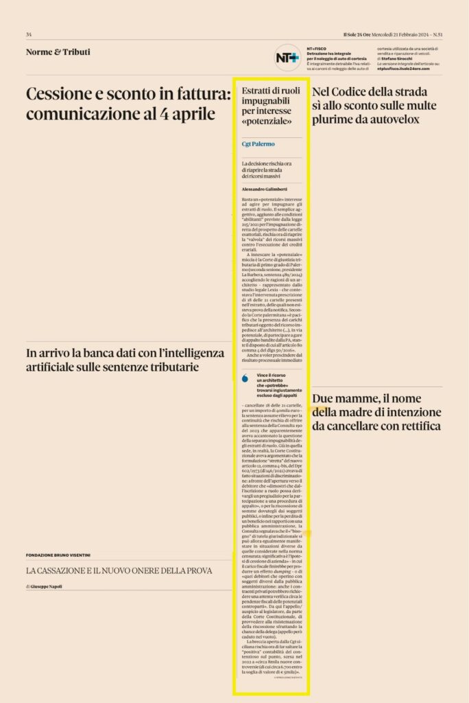 Il tema dell’impugnabilità dell’estratto di ruolo è stato oggetto di una recente sentenza della Corte costituzionale approfondita dall’avvocato Dagnino nel seguente articolo pubblicato sulla rivista generalista S dove l’avvocato Alessandro Dagnino tiene una rubrica dal titolo “Quel che è di Cesare”