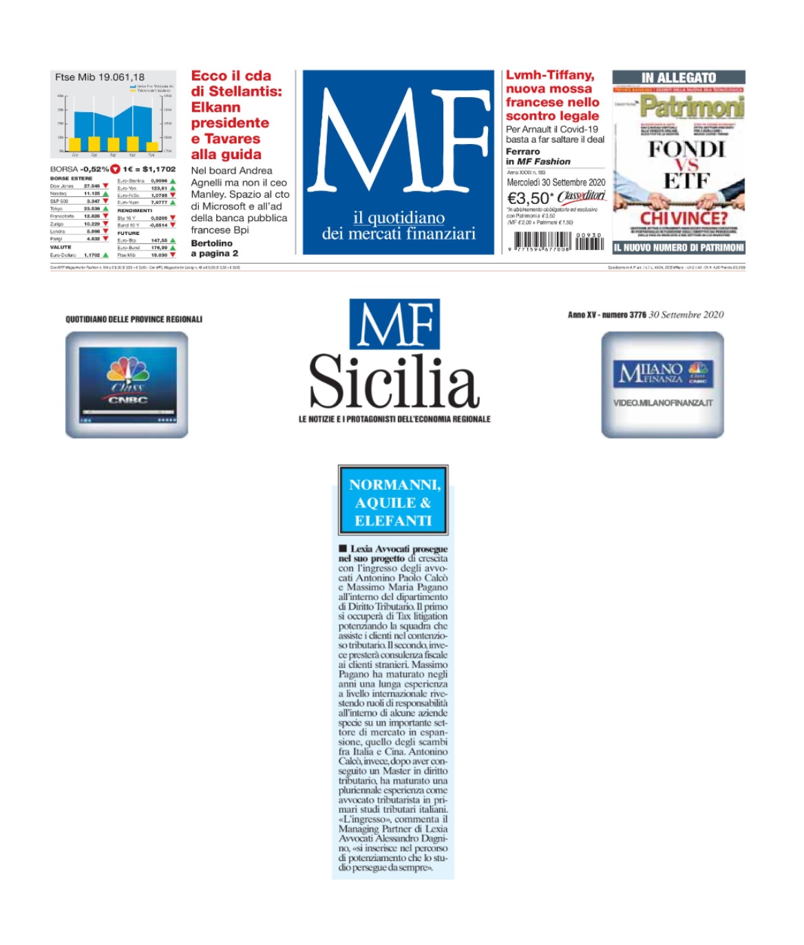 Palermo, 29 settembre 2020 – Lexia Avvocati prosegue nel suo progetto di crescita con l’ingresso degli avvocati Antonino Paolo Calcò e Massimo Maria Pagano all’interno del dipartimento di Diritto Tributario. Il primo si occuperà di Tax litigation potenziando la squadra che assiste i clienti nel contenzioso tributario. Il secondo, invece presterà consulenza fiscale ai clienti stranieri.